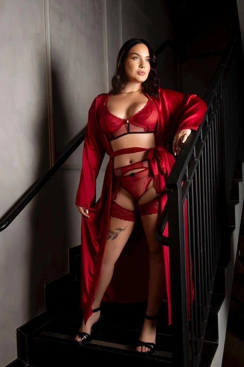 Para mulheres confiantes e obstinadas, e sabem usar de todo seu poder de sedução. Com este lindo conjunto sedutor, com detalhes em rendas, combinadas com o arrastão e tule fica difícil resistir.
